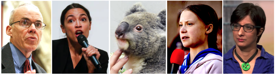 Bill McKibben, Alexandria Ocasio-Cortez, Greta Thunberg, and Zion Lights of Extinction Rebellion